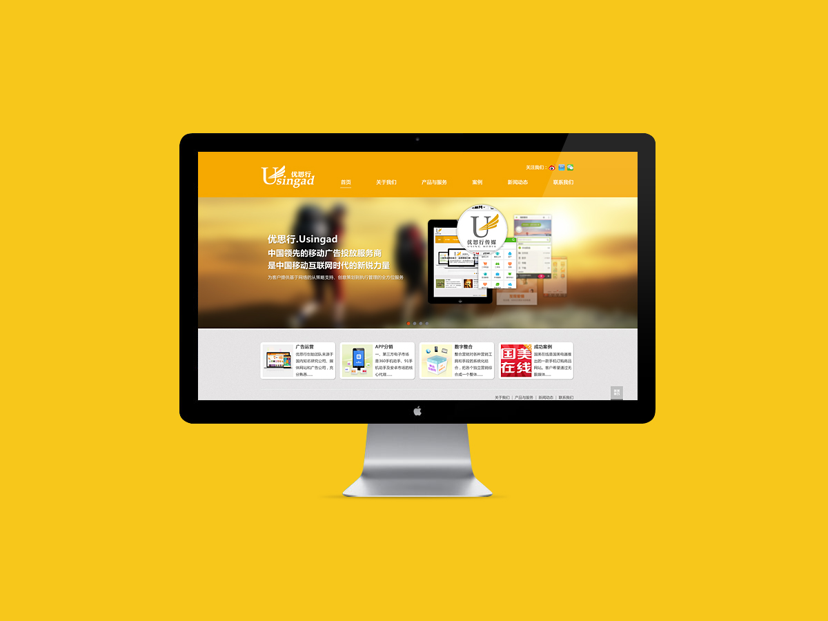 優(yōu)思行是中國領(lǐng)先的移動廣告投放服務(wù)商,是中國移動互聯(lián)網(wǎng)時代的新銳力量。是一家以網(wǎng)絡(luò)廣告投放為起點,逐漸發(fā)展為整合PC端與移動端互聯(lián)網(wǎng)業(yè)務(wù)的"節(jié)點營銷"數(shù)字服務(wù)公司。我們?yōu)榭蛻籼峁┗诰W(wǎng)絡(luò)的從策略支持、創(chuàng)意策劃到執(zhí)行管理的全方位服務(wù)。