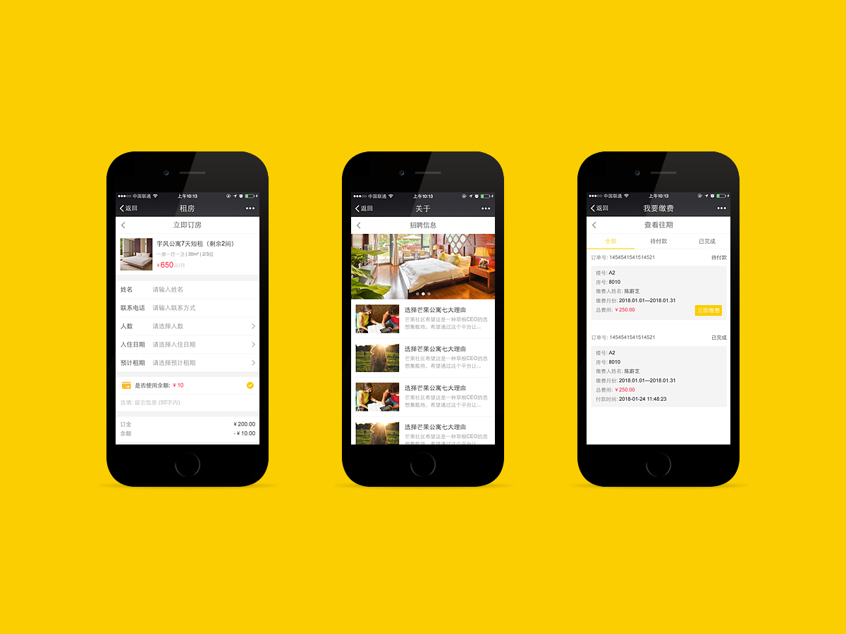 公寓系統(tǒng)訂房+租房+繳費(fèi)+報(bào)修+合同
