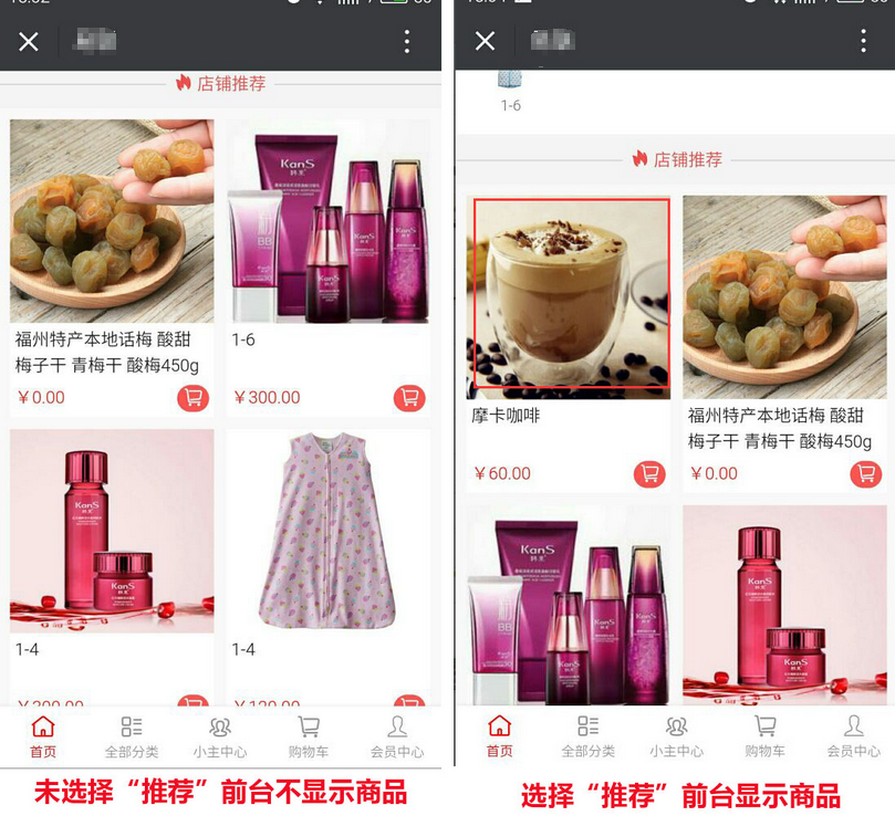 “商品屬性”如不選擇“推薦”,則添加商品在前臺(tái)“店鋪推薦”中不會(huì)顯示,參見下圖(此商品排序數(shù)字最大):