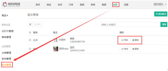 添加成功后,在【版主管理】列表中顯示,在列表中可點(diǎn)擊進(jìn)行修改和刪除,參見(jiàn)下圖: