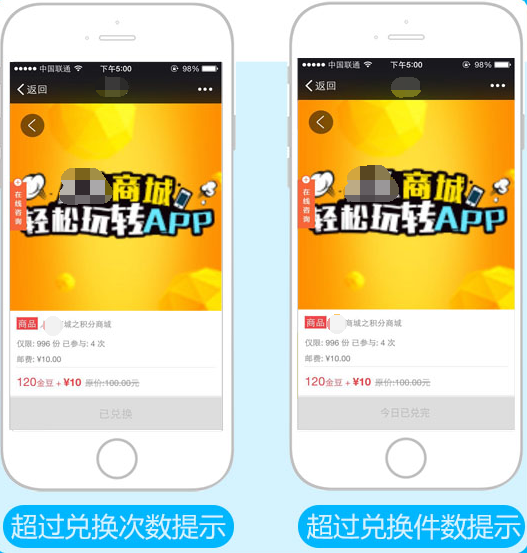 兌換限制:限制每人對(duì)此商品兌換的總共次數(shù)及此商品每天提供兌換的份數(shù),超過后無法兌換,參見下圖: