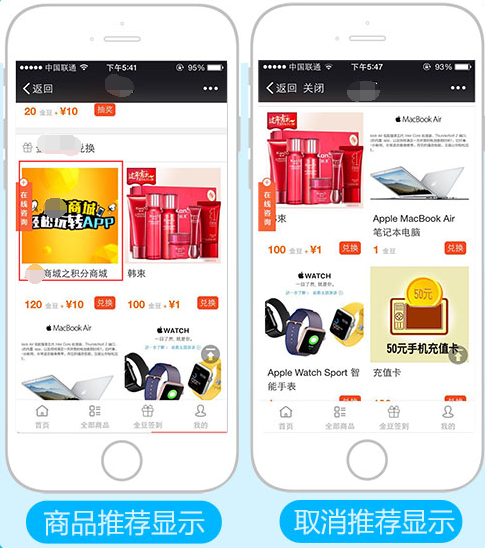 商品屬性:推薦:勾選推薦,則在積分商城首頁顯示(系統(tǒng)默認(rèn)的最多顯示4件商品),參見下圖: