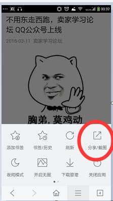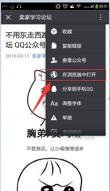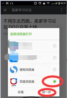 在手機(jī)瀏覽器我們選擇百度瀏覽器打開微信公眾號(hào)要分享的微信文章——瀏覽器分享功能就可以分享了如圖: